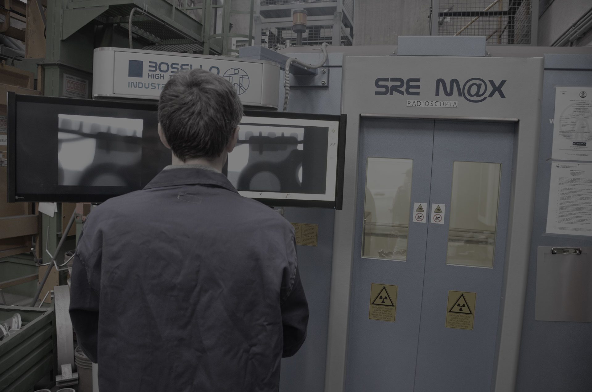 Impianto di Radioscopia Bosello da 160 kV doppia macchia focale 0.15/0.4 (1600 Watt) a Pannello Digitale con doppio monitor per confronto immagine MASTER e normative ASTM E2422.